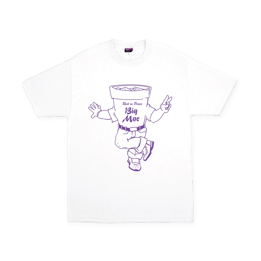 purple ink silk-screened on 5.5 oz soft-spun 100% cotton, pre-shrunk white shirt with sewn in "Pint" branded label,